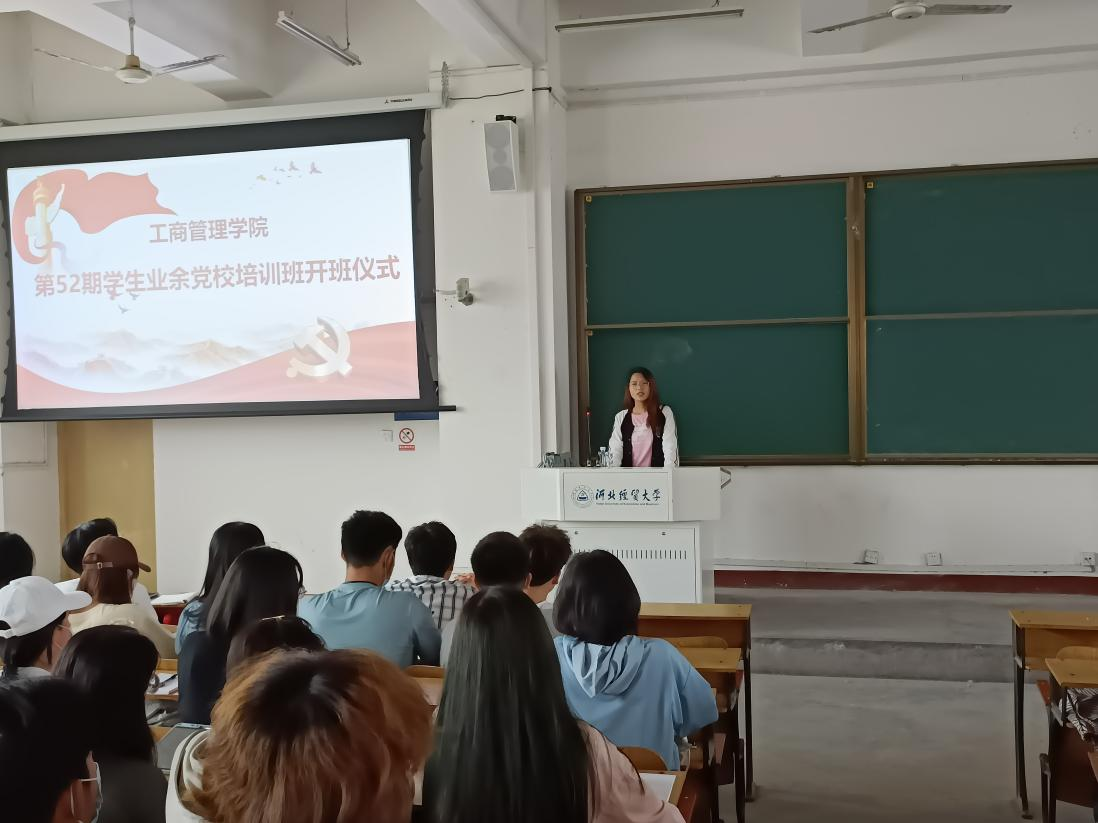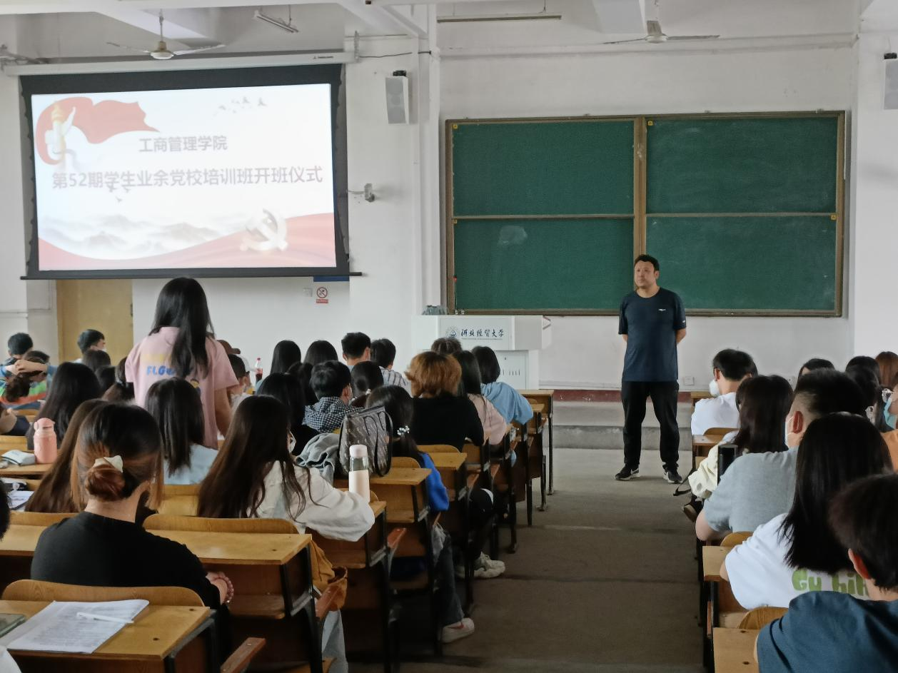 4月25日中午,星空体育官方网站第五十二期学生业余党校培训班在第五教学楼四教室举行开班仪式,学院党委副书记范伟、专职组织员宋欣到场,星空体育官网入党积极分子二百余人参加。
