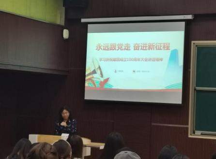 为深入学习习近平总书记在庆祝建团成立100周年大会发表的重要讲话精神,5月15日下午,星空体育官网院长李桂荣于MBA一教室讲授“永远跟党走,奋进新征程”主题思政课,2021级智慧工商一、二班全体同学参加。