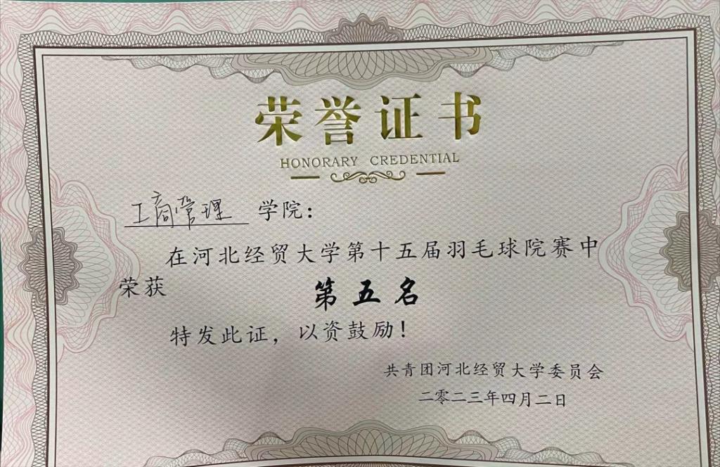 为丰富学生体育运动,提高竞技水平,增强团队凝聚力和向心力,4月1日至2日,星空体育官方网站积极组织同学参加星空体育官方网站羽毛球院赛。其中,由雷宇聪、王俊磊、马学治、王梦雨、韩佳轩、鲍勃涵、李昕玥五位同学组成的团队取得第五名的好成绩。