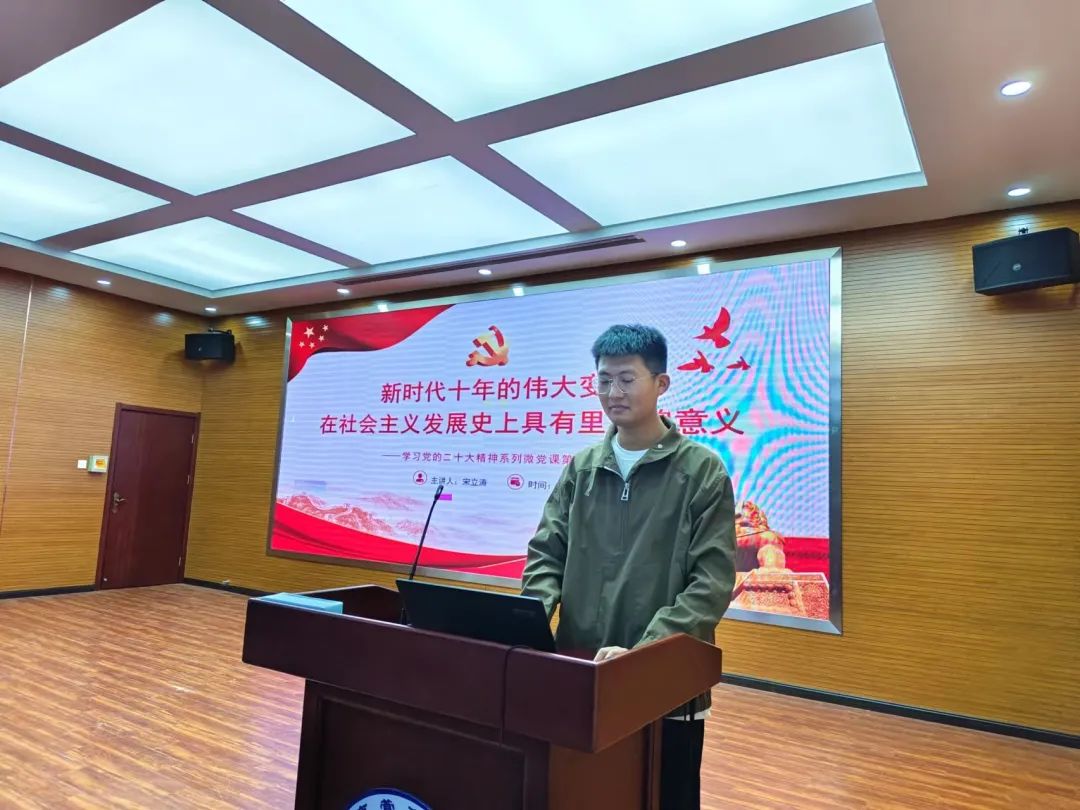 2023级工商管理专业研究生宋立涛主讲本届第三期微党课“新时代十年的伟大变革在社会主义发展史上具有里程碑意义”。