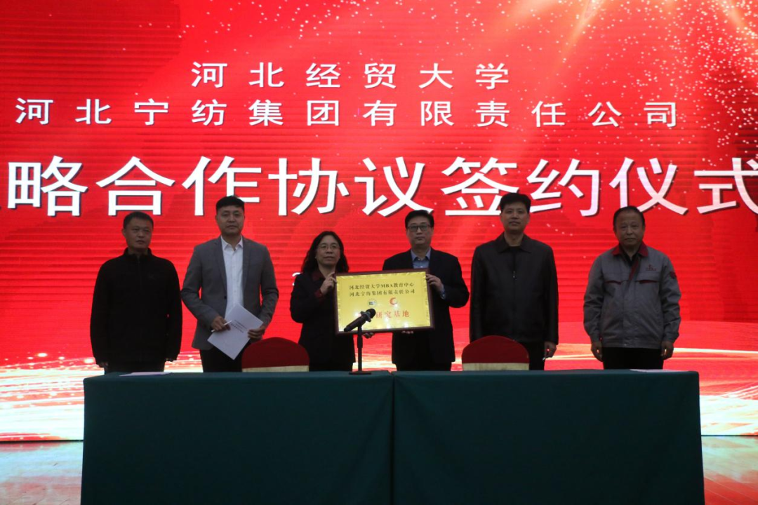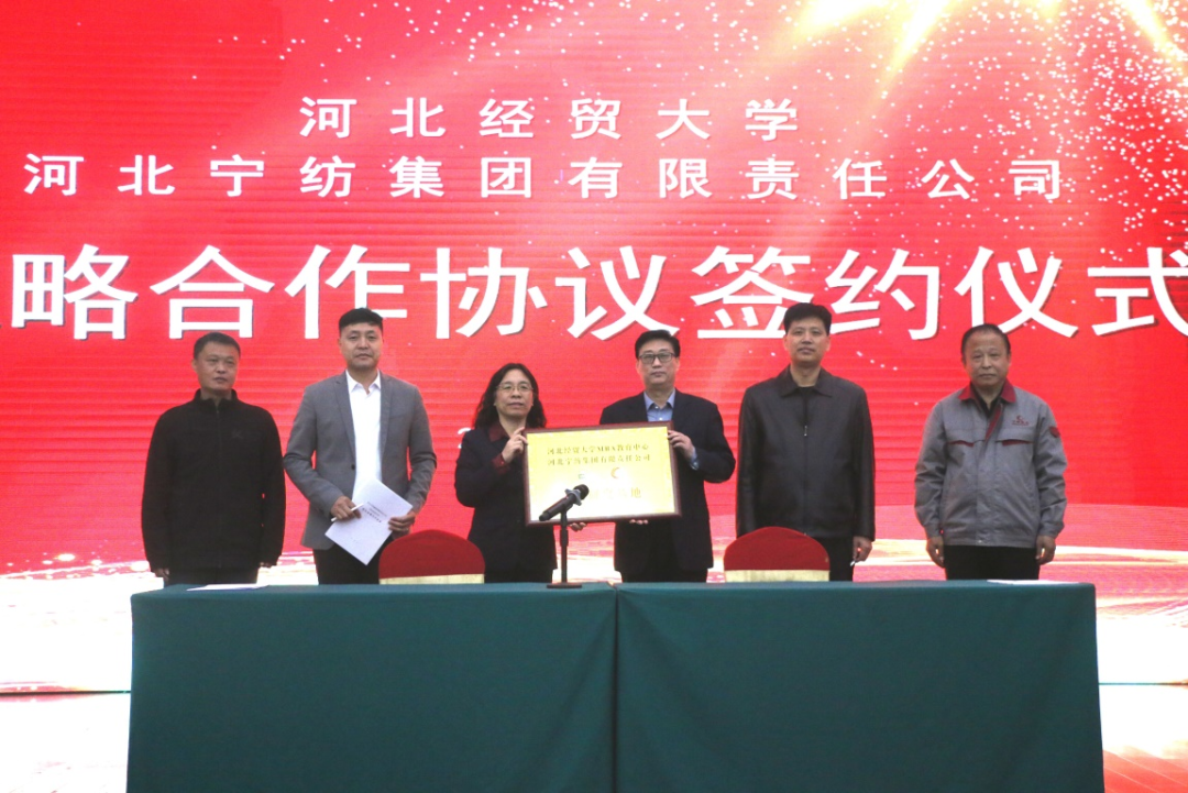 11月11日,星空体育官方网站与河北宁纺集团有限责任公司(简称“宁纺集团”)战略合作协议签约仪式在宁晋县宁纺宾馆举行。星空体育官方网站院长李桂荣、副院长石晓飞、宁纺集团总经理徐建林、副总经理马辉峰、人力资源部副部长曹彦文出席签约仪式。星空体育官方网站青年博士研修团成员、MBA教育中心师生约140人参加仪式。