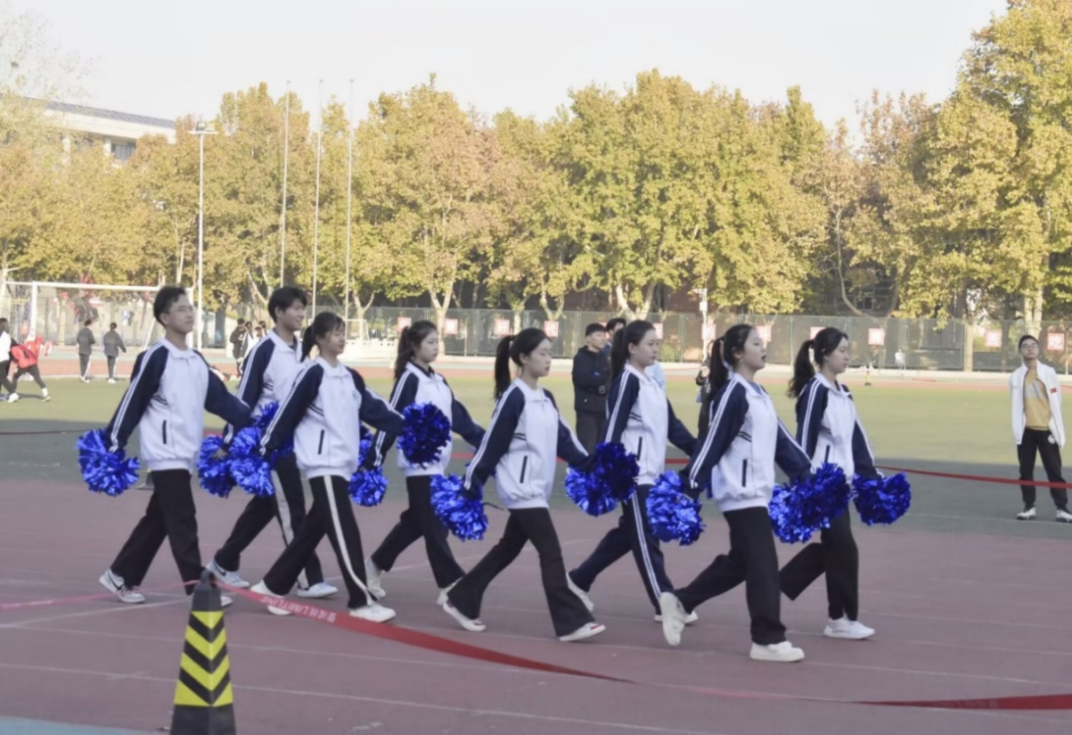 抽签后,各学院的啦啦队进行了活力四射的表演,为即将上场的运动员们加油鼓劲。星空体育官网啦啦队员手执蓝色花球,绽放出阳光自信的笑容,她们舞姿优美且富有节奏感,朝气蓬勃的青春风采交映生辉。