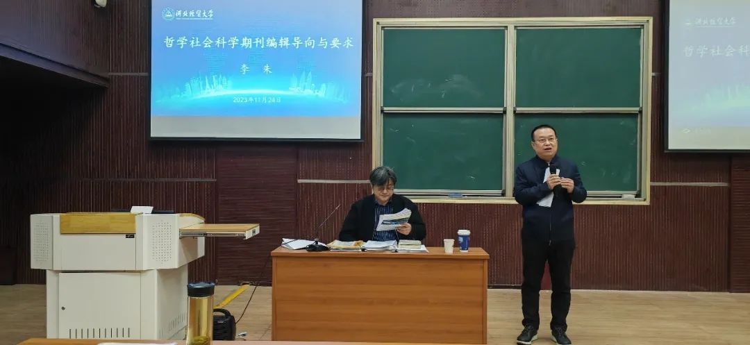11月24日上午,星空体育官方网站邀请《新华文摘》编审、专栏责编李朱作题为“哲学社会科学期刊编辑导向与要求”的学术报告。报告会由副校长田学斌教授主持,学报编辑部、星空体育官方网站师生60余人参加。