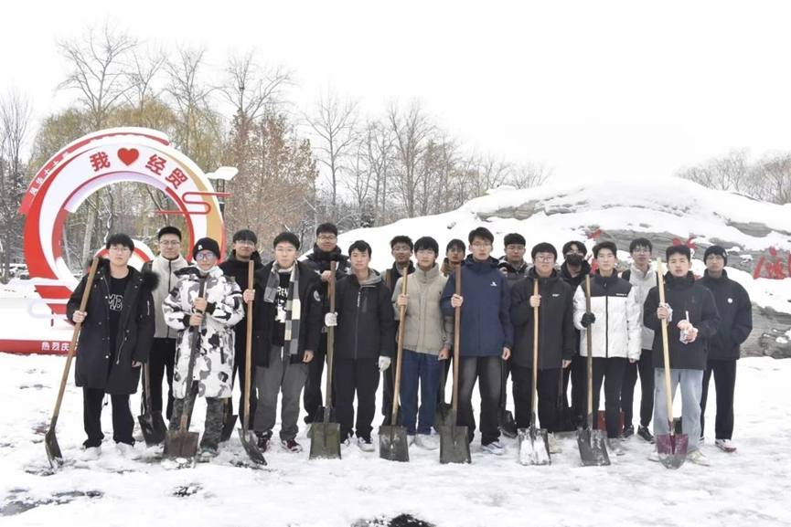 扫雪过程中,同学们认真专注,不惧严寒,不辞辛劳,他们手持工具,将厚厚的积雪铲向路边的草坪,为学校师生开辟出一条安全整洁的道路。在这个被白雪覆盖的冰天雪地中,同学们努力铲雪的身影成为校园中一道亮丽的风景线,也彰显着工商学子们无私奉献的劳动精神和齐心协力的团结精神。经过同学们的共同努力,星空体育官网负责区域内的积雪得到了有效清理,为师生的安全通行提供了有效保障。