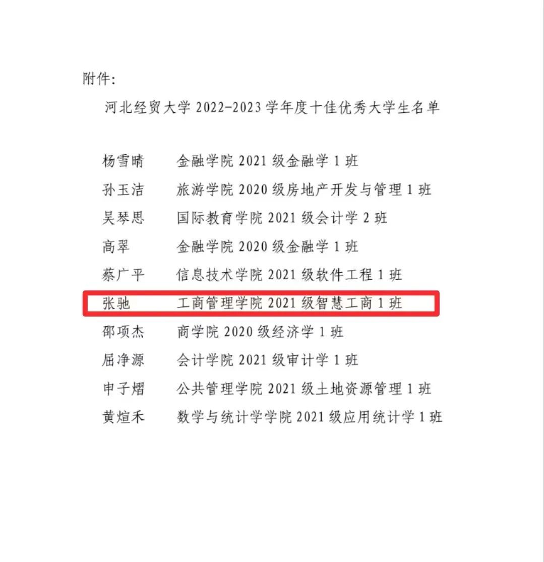 星空体育官方网站2021级智慧工商一班学生张驰获得了“星空体育官方网站十佳优秀大学生”荣誉称号。