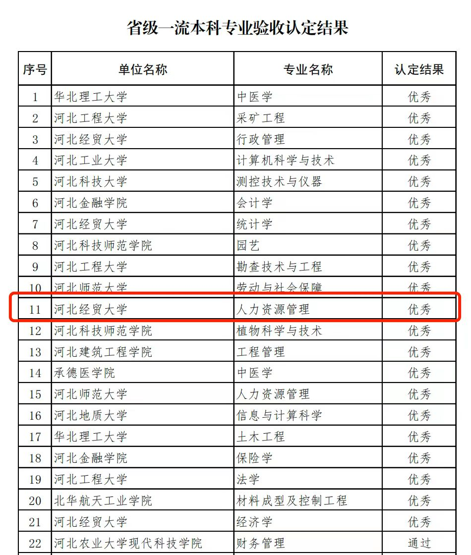 学院人力资源管理专业在省级一流本科专业验收中获优秀评级。