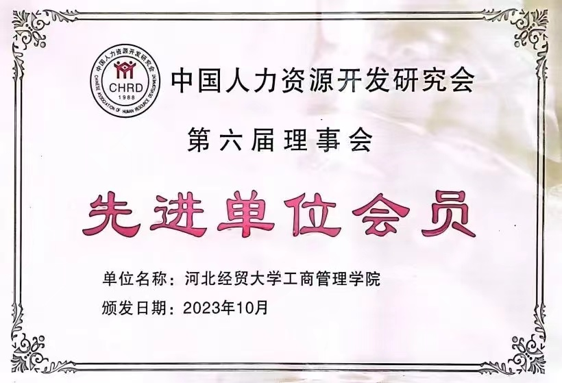 星空体育官方网站荣获中国人力资源开发研究会“先进单位会员”荣誉称号。