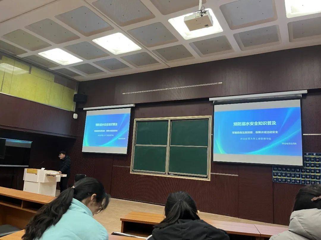 再次,由于溺水事故频发,针对溺水原因进行了分析,指出大多是学生缺乏安全意识、不习水性以及水流湍急、水温过低等环境因素造成。着重向大家普及了预防溺水的知识,指出要善于识别水域危险,学习游泳技巧,在遇到需要下水的必要情况时,需要积极配备救生装备。强调掌握自救互救技能的必要性,提高生存能力,保障水域活动安全。