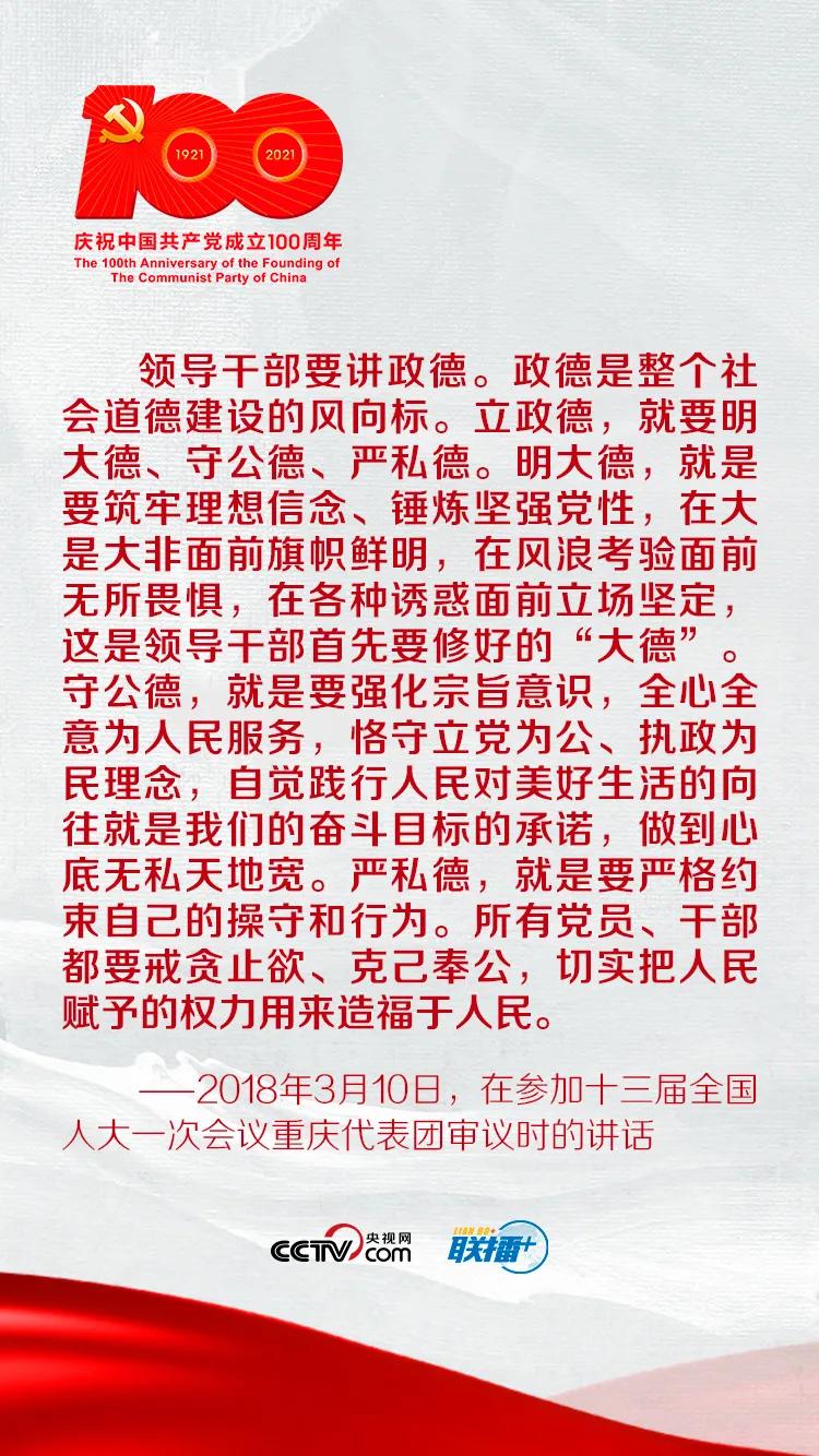 国无德不兴,人无德不立。政德绝非私事、小事,而是事关党的形象和创造力、凝聚力、战斗力的大事、要事。央视网《联+特梳理总书记重要讲话,与您一起学习。