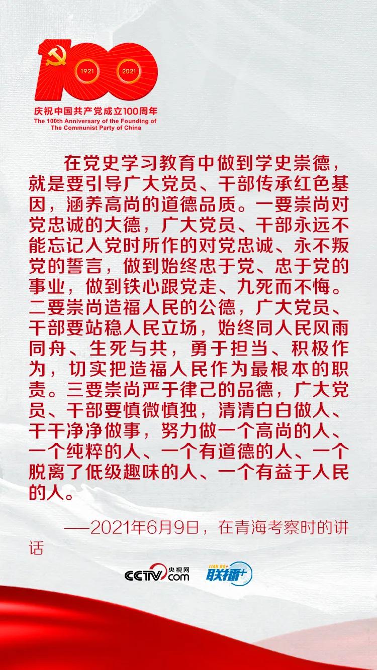 近期,习近平总书记在青海考察时就“学史崇德”作了深刻论述,清晰阐明了“学史崇德”三个方面的重要内涵。总书记强调,在党史学习教育中做到学史崇德,就是要引导广大党员、干部传承红色基因,涵养高尚的道德品质。