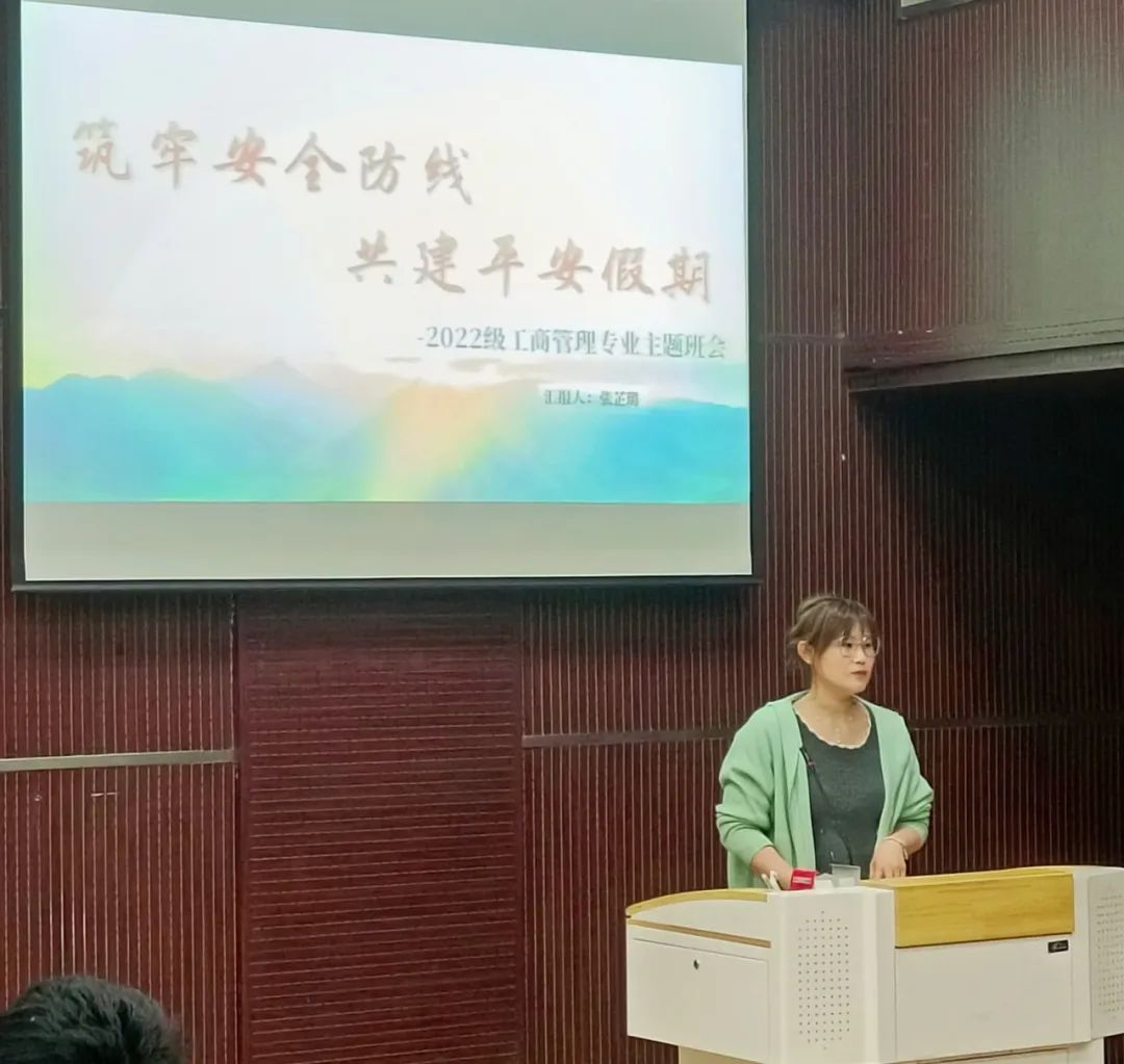 为落实学校关于学生安全的各项决策部署,提高学生安全素养和自我防护能力,切实做好清明节假期安全教育工作,4月3日,2022级工商管理专业召开以“筑牢安全防线,共建平安假期”为主题的班会活动。本次活动由辅导员张芷璐主持,2022级工商管理专业全体同学参加。