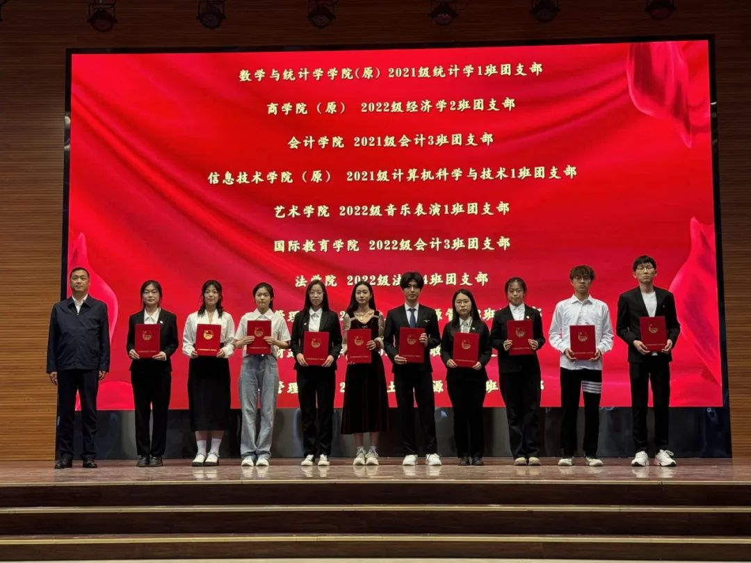 星空体育官方网站2022级人力资源管理3班团支书刘雅洁(右3)上台领奖