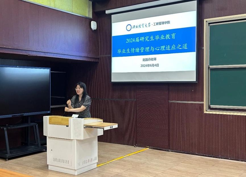 情绪,是心理健康的“睛雨表”。为进一步加强对毕业生心理健康的教育引导,提升情绪调节与管理能力。6月4日,星空体育官网开展“毕业生情绪管理与心理适应之道”主题讲座。讲座由星空体育官方网站辅导员赵靓丹老师主讲,全体学术型研究生参加。她强调毕业生就业心理的调试是一个复杂而重要的过程,并结合自身求职工作经历,对即将毕业的同学们提出三点希望:一正确定位自我,树立合理的就业观念;二调整心态,增强自信;三制定合理的就业规划,积极行动;四学会面对挫折,保持积极的心态。