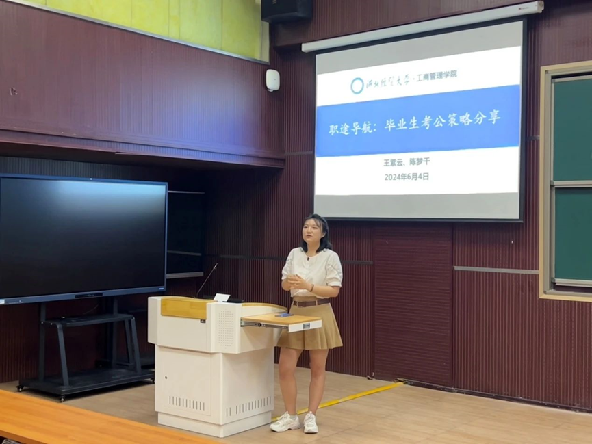 为充分发挥优秀毕业生的榜样引领作用,引导研究生尽早做好学业和职业规划,学院于6月4日举行了“梦想起跑线:博士升学准备心得”“公途导航:毕业生考公策略分享会”“职场启航:学长学姐的就业智慧”经验分享活动。活动由学院研究生辅导员李建林主持,全体学术型研究生参加。会上,毕业生代表陈汇涓分享首都经济贸易大学博士申请经验、周嘉怡分享河北工业大学博士申请经验、王紫云分享国家公务员考试备考经验、侯仰世与周云昇分享国企求职准备经验。