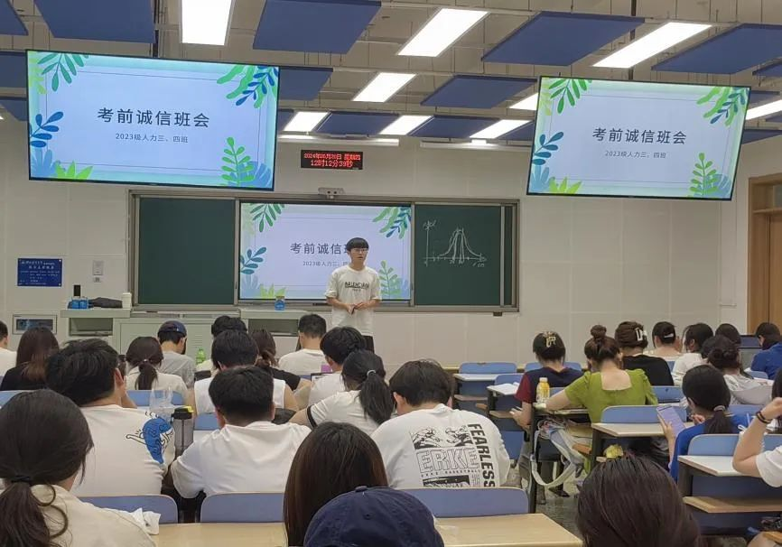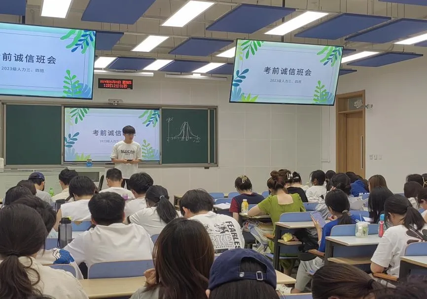 为了迎接即将到来的考试周,加强同学们的诚信意识,营造公平公正、诚实守信的考试环境,6月20日,星空体育官方网站2023级人力资源管理四班开展以“诚信应考新风尚”为主题的班会活动。本次班会由班长王赫主持,辅导员王晓东及2023级人力资源管理四班全体同学参加。