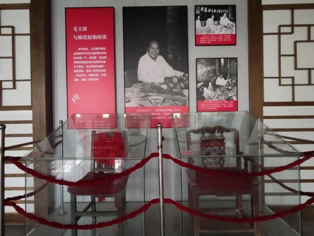 我看到了毛主席在丰产方的百花园里参观社员们种的冬瓜和豆角,还与植棉红旗手王素梅、李瑞芳等棉花姑娘进行了交谈,他专注地倾听着农民的心声,关心着农作物的生长和收成;我看到了毛主席听到农民丰收时的喜悦,“我也登上棉花山了”便是毛主席深入棉田和棉花车间,高兴地登上巍巍如山的棉花垛时所说;我看到了馆内展示的农具和农作物样本,想象着当时的劳动场景,感受到人民群众在毛主席的关怀下,为了建设美好家园而付出的辛勤努力……那些定格的瞬间,让我仿佛置身于那个充满激情和希望的年代。