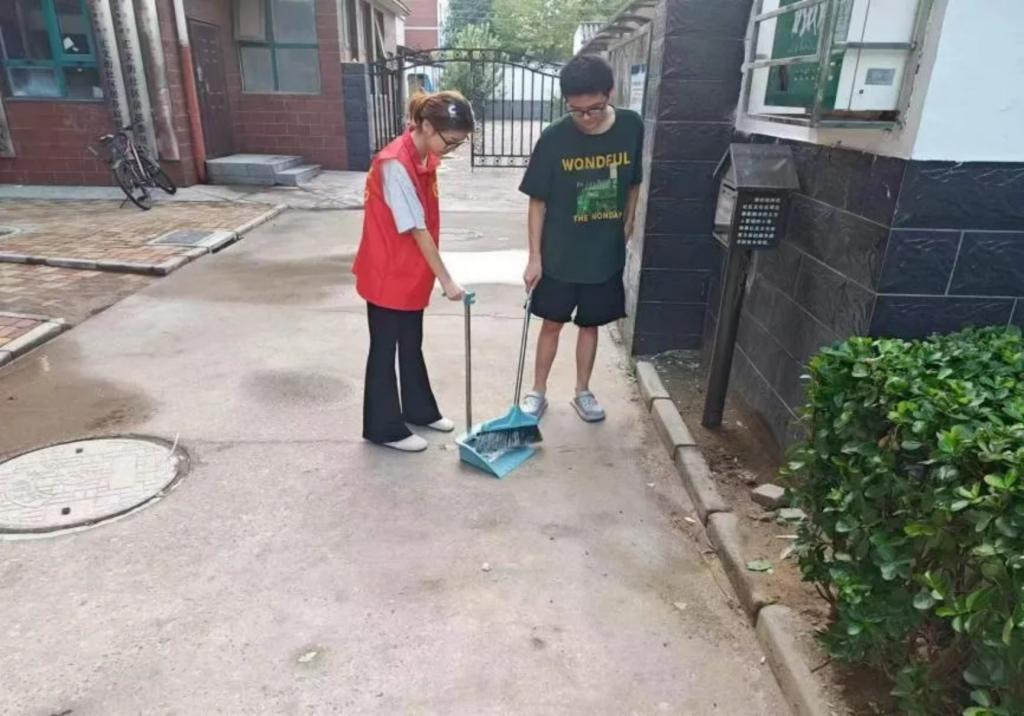 采访调查结束后,我们开展了红旗街道环境治理实践活动。大家分工协作,相互配合,认真清扫区域内的枯枝落叶、卫生死角等,并将不规范停放的电动车摆放整齐。在众人的努力下,区域环境面貌焕然一新,并形成了人人响应全民参与的良好氛围。我们也进行了多社区联动,各社区结合自身特点,开展针对性整治活动。通过宣传栏、微信公众号等渠道向居民普及环境治理相关知识;设计绿化景观,提升社区美感;种植花草树木,提高绿化覆盖率等。