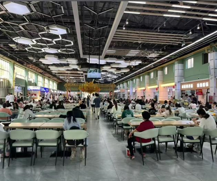 紧邻1、2栋学生公寓,距离第三教学楼较近。这里用餐环境一流,有自选餐,小龙虾拌面、咸蛋黄拌面等招牌美食。周一至周五的12点和18点是用餐高峰。