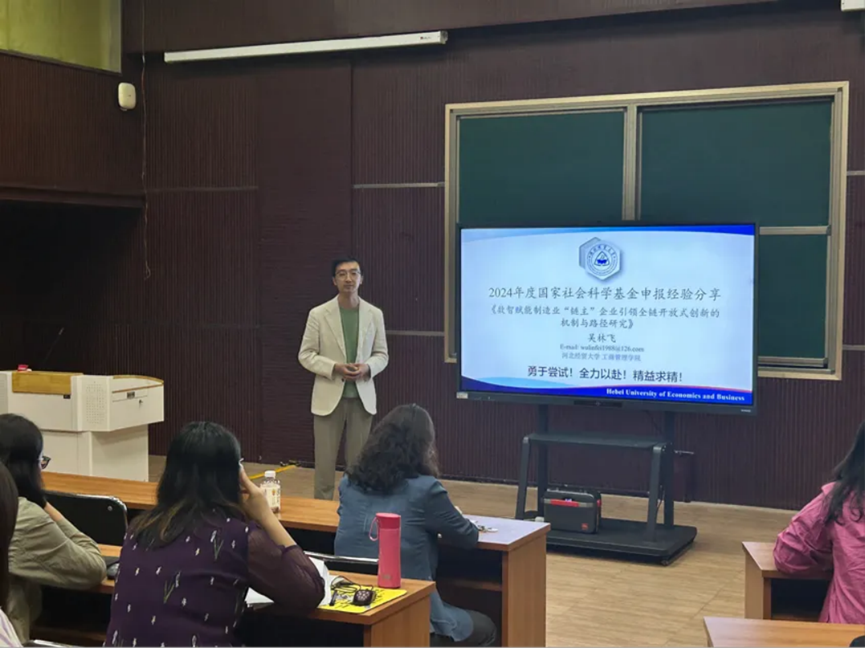 吴林飞博士结合自己申报国家社科基金项目的经验与体会,从立项趋势、项目选题、活页论证注意事项等方面进行了分享。首先对近年来国家社科基金管理学立项情况进行深入分析,为在座的老师提供了新的研究思路和方向。吴林飞指出,申报高层次项目,要做到思想上全力以赴、潜心研究;行动上精心打磨、精益求精;选题上要重视破题的重要性,紧贴国家政策方针、聚焦国家重大需求;论证上要言简意赅、归纳精准、逻辑清晰、环环相扣。