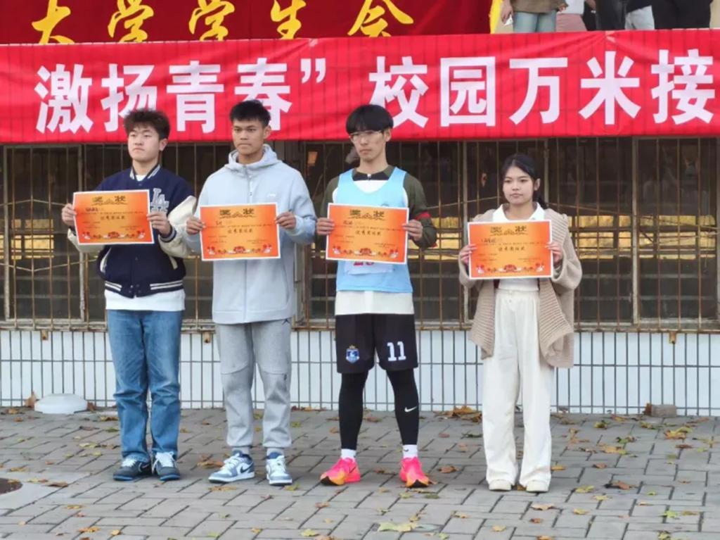11月3日,星空体育官方网站第十二届“拼搏万米,激扬青春”校园万米接力赛在学校东操场隆重举行。本次比赛共有15个学院参与,经过激烈角逐,星空体育官方网站参赛队伍最终取得校园万米接力赛第四名的优异成绩,荣获“优秀团体奖”荣誉称号,啦啦操队伍荣获“最佳人气奖”荣誉称号。