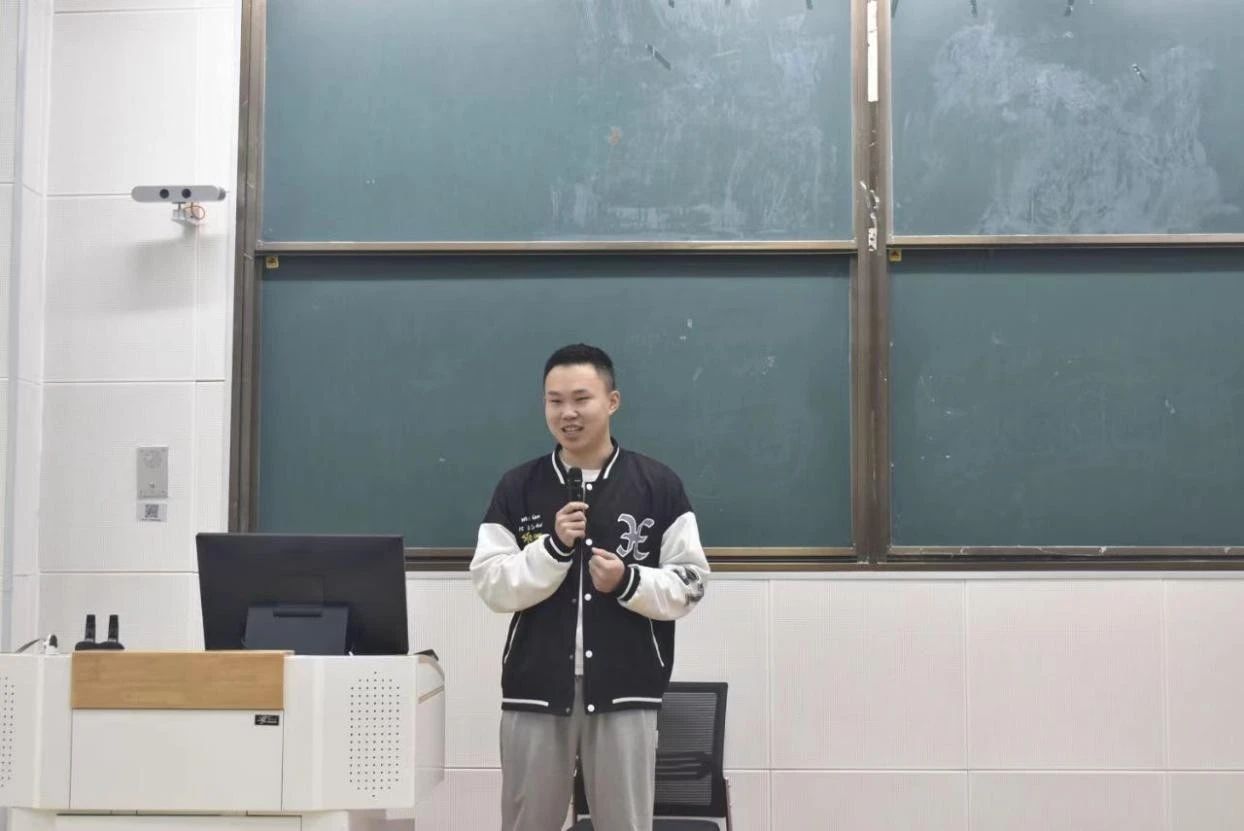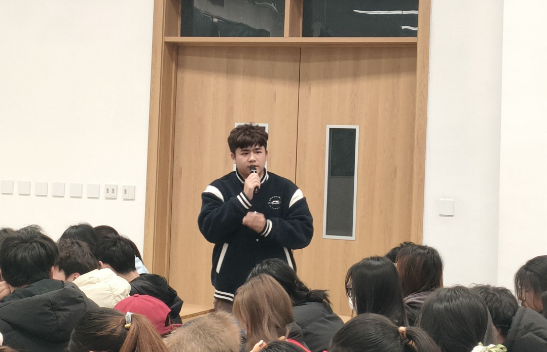 随后,2021级智慧工商2班的李瞻亦以“脚踏实地,‘异想天开’”为主题,分享了三段实习经历以及实习体会。他强调,在职业发展中,既要脚踏实地,做好每一项工作,又要敢于“异想天开”,勇于创新和突破。他通过自己在实习中的真实案例,向同学们详细讲解了如何在实践中平衡脚踏实地与开拓创新,为同学们提供了宝贵的经验,助力学弟学妹们提升自我能力与水平,增长职业认知。