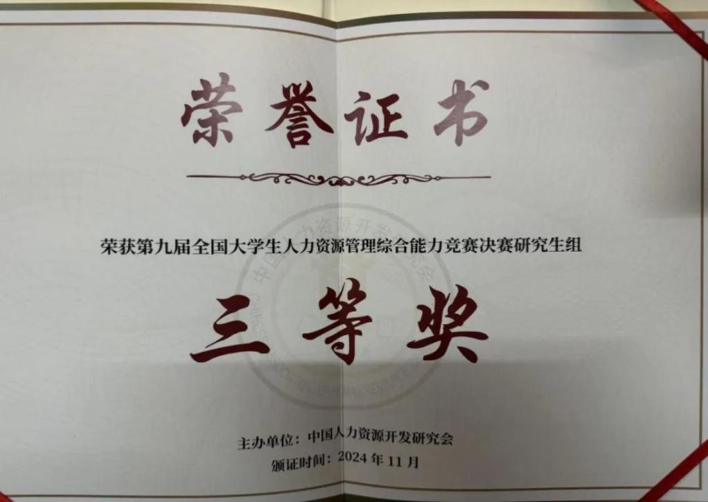 2024年11月26日,第九届全国大学生人力资源管理综合能力竞赛总决赛暨高峰论坛于南京市东南大学(四牌楼校区)圆满落幕。本次总决赛由中国人力资源开发研究会主办,南京大学、东南大学承办,上海踏瑞科技有限公司提供技术支持。星空体育官方网站本科生代表队荣获一等奖,研究生代表队荣获三等奖。