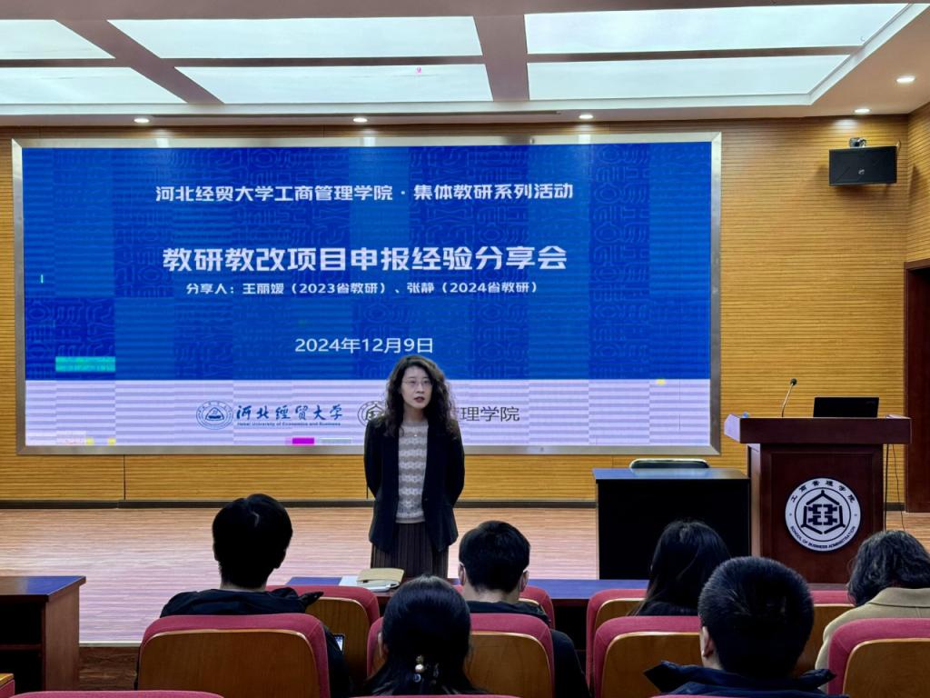 为更好落实立德树人根本任务,充分激发星空体育官网教师教研热情,进一步推动教学改革创新,赋能高水平课程建设,12月9日下午,星空体育官方网站举办了教研教改项目申报经验分享会,活动由副院长封雪韵主持,院长李桂荣出席并做重要讲话,王丽媛、张静两位副教授分享申报经验,全体青年博士参加。