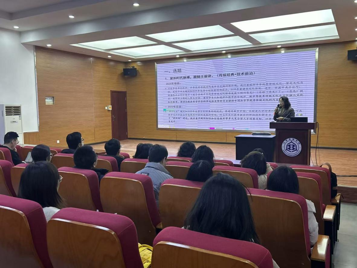 最后,李桂荣发表重要讲话。她高度评价了两位老师在教学改革中所做出的积极探索,并针对项目申报时容易出现的种种问题向参会青年博士提出了四点要求:一是选题要合时,符合时代需求,回答时代问题;二是选题要聚焦,要从小切口“以小见大”,切忌选题“大而空”“泛而浮”;三是题目要亮眼,体现思辨,突出重点;四是作品要精细,要认真研读申报要求,在精准扣题的基础上,力求逻辑缜密、表述精到、图文并茂。