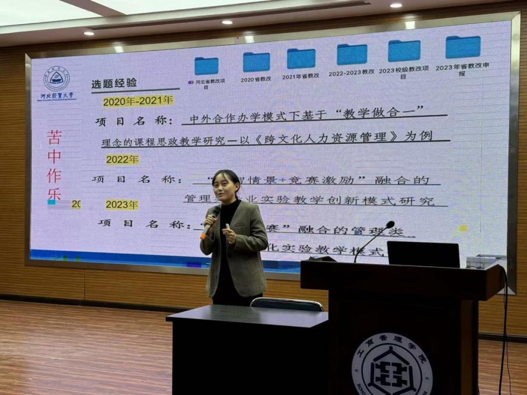 随后,张静就本次申报教研项目的一些思考与青年博士进行分享,她将中华优秀传统文化与人力资源管理课程相结合,既深耕了专业课程,更弘扬了文化自信和民族自豪。她表示,青年教师应基于个人兴趣和特长锚定一具体方向长期耕耘,同时也要以国家政策为导向,贴合专业教育教学中的痛点与重点,做出满足时代需求、回答现实问题、体现个人思考的教研项目。