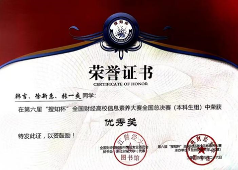 工商学子在全国财经高校大学生信息素养大赛全国总决赛中获奖,2023级市场营销2班韩吉同学所在团队表现突出,荣获本科生代表队优秀奖。