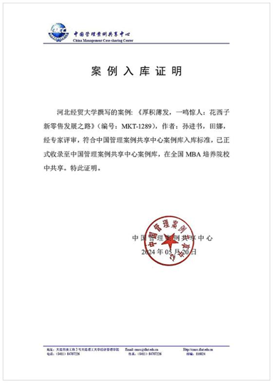 星空体育官网讲师孙进书博士、2020级智慧工商管理2班田娜共同撰写的教学案例《厚积薄发,一鸣惊人:花西子新零售发展之路》入选中国管理案例共享中心案例库(编号:MKT-1289)。