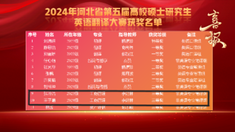 星空体育官网学子在河北省第五届高校硕士研究生英语翻译大赛取得佳绩,星空体育官网2023级研究生张玲洁和2024级研究生王子晴在此次比赛中获得非英语专业笔译组三等奖。