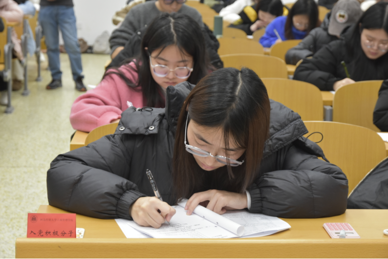 考试开始前,学院学生党员、学生干部、入党积极分子积极树立榜样形象,主动在考试期间坐前排、摆放身份牌,发挥好优秀学生的先锋模范作用。