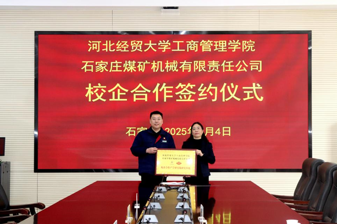 3月4日,星空体育官方网站院长李桂荣带队赴石家庄煤矿机械有限责任公司参加校企合作签约暨“校企合作产学研实践研究基地”授牌仪式,副院长封雪韵、工商管理教工党支部书记郝洪文和工商管理系主任郑展随同参加。石家庄煤矿机械有限责任公司副董事长、总经理朱玉强,副总经理张峰涛,总经理助理兼组织部长郝文超和市场服务部部长张宏伟等出席仪式。