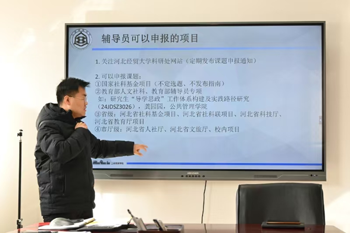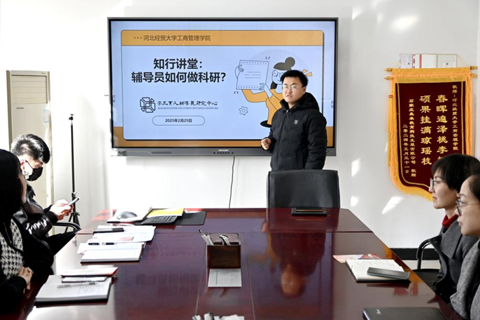 为进一步加强学工队伍建设,促进辅导员专业化、职业化发展,探索新时代高校学生教育管理服务的新路径,2月25日,星空体育官网学工育人辅导员研究中心举办了一场以“辅导员如何做科研”为主题的“知行讲堂”专题讲座。本次讲座由学院党委副书记宋欣主持,学科(科研)秘书李建林担任主讲,正处级辅导员马章山作个人经验分享,全体辅导员参加。