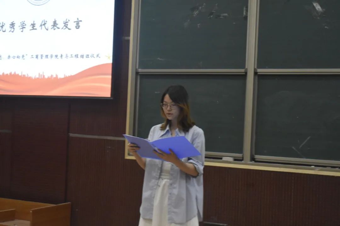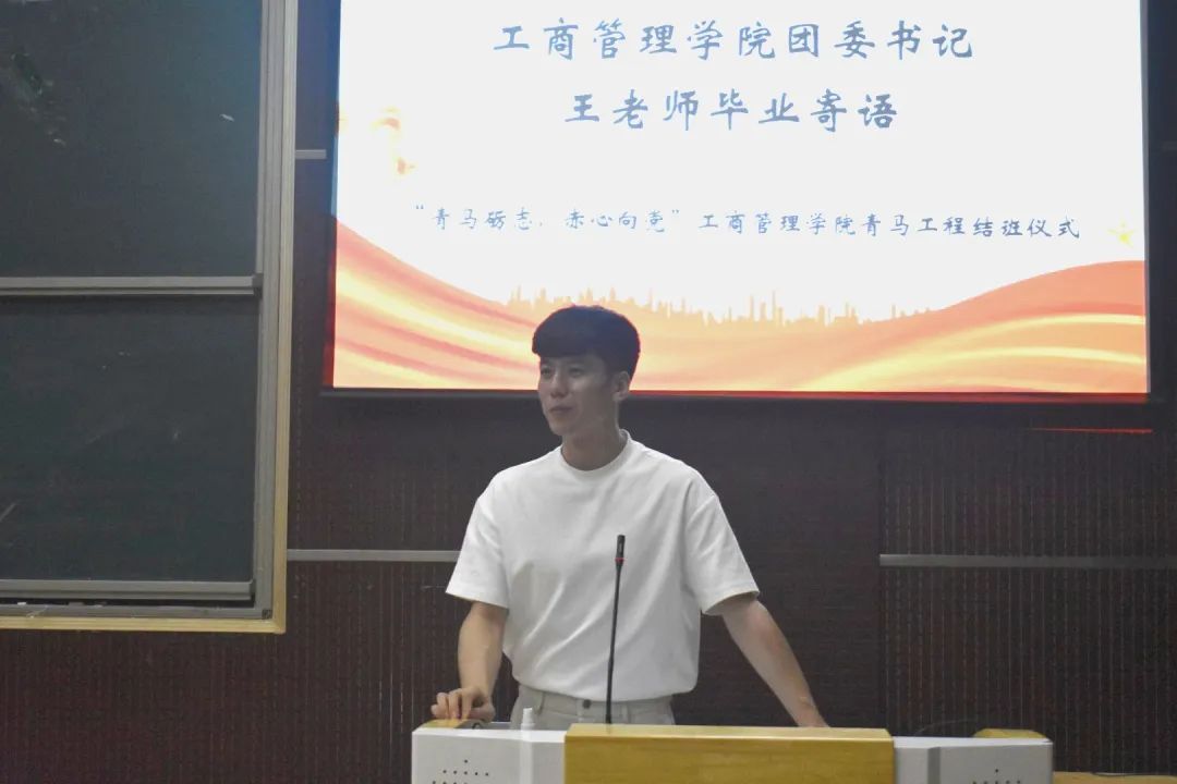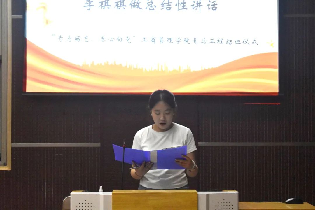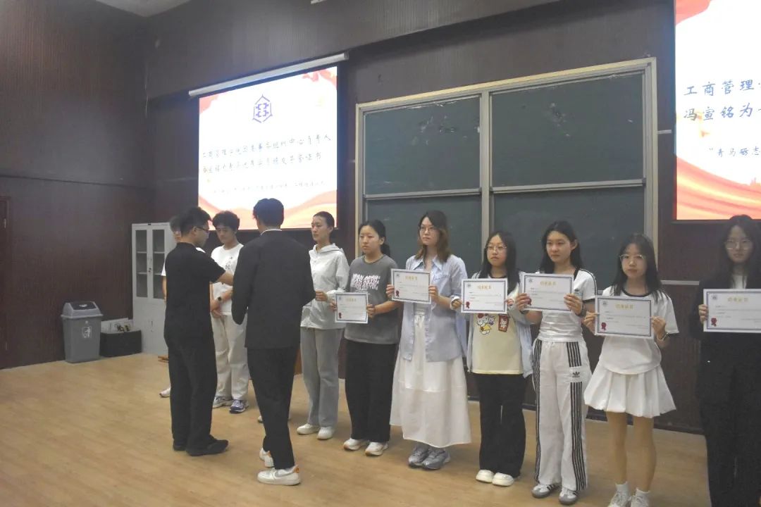 活动伊始,团委书记王晓东寄语全体青马学员,树立问题意识,强化辩证思维,做到知行合一,勉励学员们坚定马克思主义理想信念,增强政治素养,提升实践能力,将在青马工程中汲取的信仰力量转化为实际行动。随后,优秀青马学员代表马心悦分享感悟,阐述于青马工程中收获的宝贵经验,表明在今后保持刻苦奋进、勇于作为的坚毅态度,及用实际行动诠释青年担当的坚定信念。随后,团委事务组织中心负责人冯宣铭为全体青马学员颁发结业证书,并为青马优秀学员颁发奖状,系列表彰既是对青马学员成长的充分肯定,更是对未来发展道路的持久鞭策。最后,团委副书记李祺祺进行深入总结,带领学员们回顾往期理论学习与实践锻炼,呼吁其以此次青马工程为契机,坚定政治立场,提升思维广度,实现马克思主义学习到商科学习的飞跃,并提出“坚守初心,筑牢信仰之基”“学以致用,锤炼过硬本领”“示范引领,凝聚奋进力量”三点要求,激励学员们继续发扬优良作风,不断砥砺前行,为实现中华民族伟大复兴的中国梦贡献青春力量。