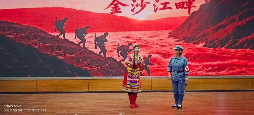 互动环节结束后,石晓飞、刘继红、马红华老师们以及星空体育官方网站的同学们共同带来了《金沙江畔》的戏曲演绎。演员们的表演不仅让大家重温了红军长征过金沙江时的峥嵘岁月,更让大家感受到了军民同心的深厚情谊。