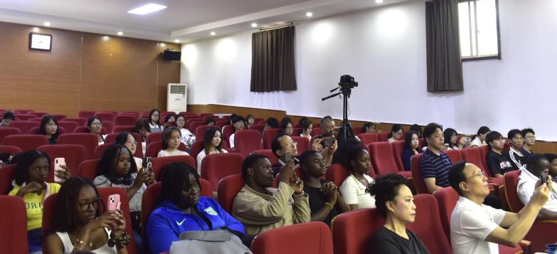 欣赏了诸多专业表演后,现场进入轻松有趣的互动环节。首先,闫红为同学们介绍传统服饰,让大家感受服饰里的文化韵味;之后,王建华带国际教育学院同学们玩转绕口令,同学们积极参与,现场氛围热烈,大家在欢乐中不仅学到了知识,还感受到了传统艺术的乐趣。