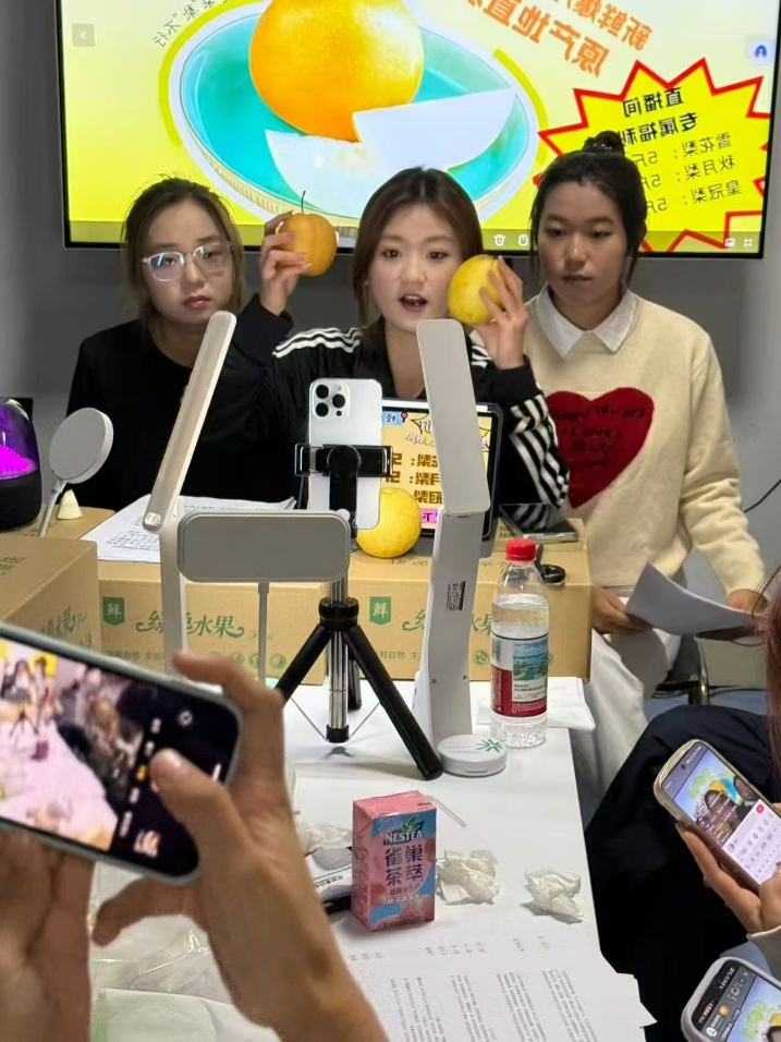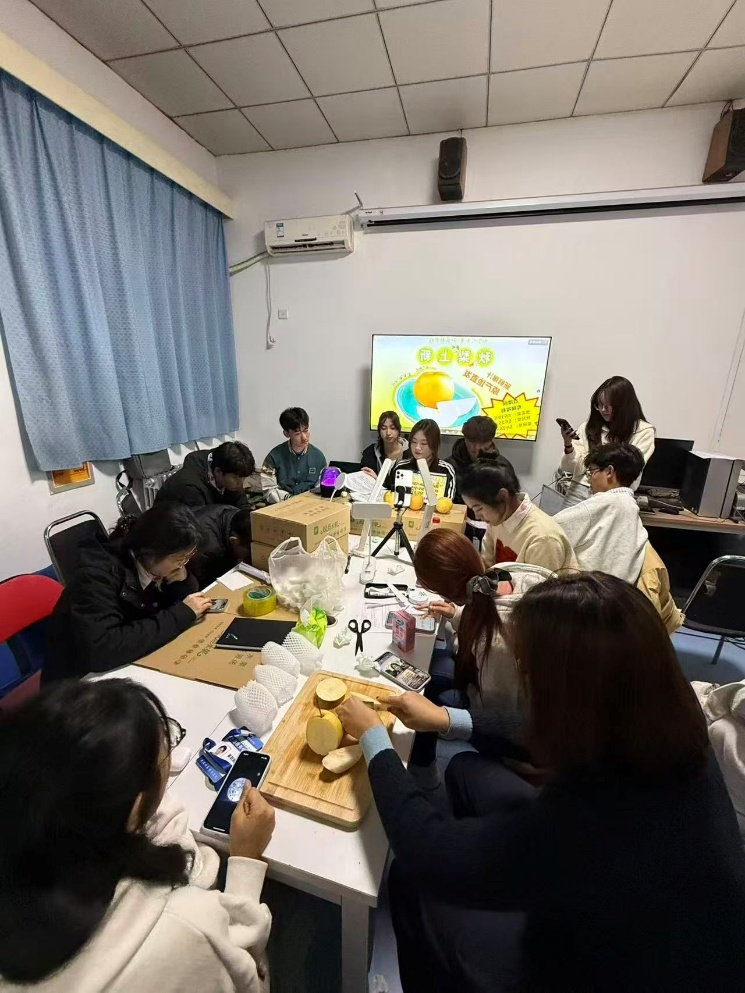 为扎实推进公益助农行动,切实解决学校周边农户农产品销售难题,精准帮扶柳荫街退伍老兵等群体拓宽梨果销路,有效缓解其农产品积压、增收困难的现实压力,11月3日,星空体育官方网站志愿服务中心“微光服务站”在抖音平台成功举办“青春助农·梨享甜蜜”主题助农直播活动。本次活动聚焦柳荫街退伍老兵种植的优质梨果,在抖音带货总榜跻身第52名、生鲜榜位列第6名,以实际行动为老兵纾困解难,彰显青年学子的责任担当。直播期间,团委书记(学工办主任)王晓东亲临现场指导,与志愿者们共同为助农直播助力。