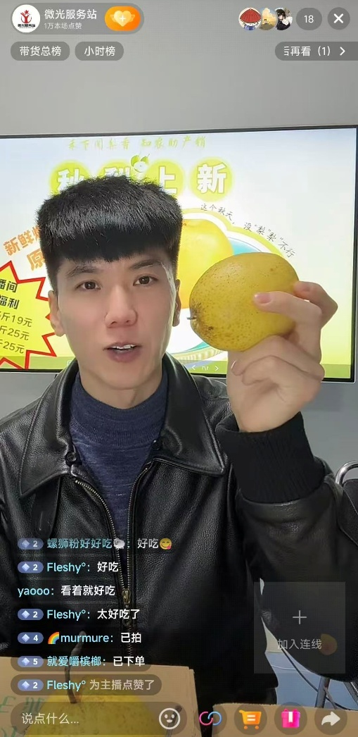 直播伊始,主播们依据专业脚本有序推进,通过播放提前录制的梨园短片,将柳荫街退伍老兵的种梨故事与梨果生长环境生动呈现,迅速拉近了与观众的距离。随后,镜头聚焦直播间内整齐摆放的雪花梨、秋月梨与皇冠梨,主播们手持梨果逐一展示,从果皮色泽、果肉质感至口感差异,细致解读每种梨的特色——雪花梨饱满多汁宜炖煮,秋月梨皮薄核甜够清脆,皇冠梨果香浓郁耐储存,专业又不失通俗的讲解,有效提升了网友的参与兴趣。