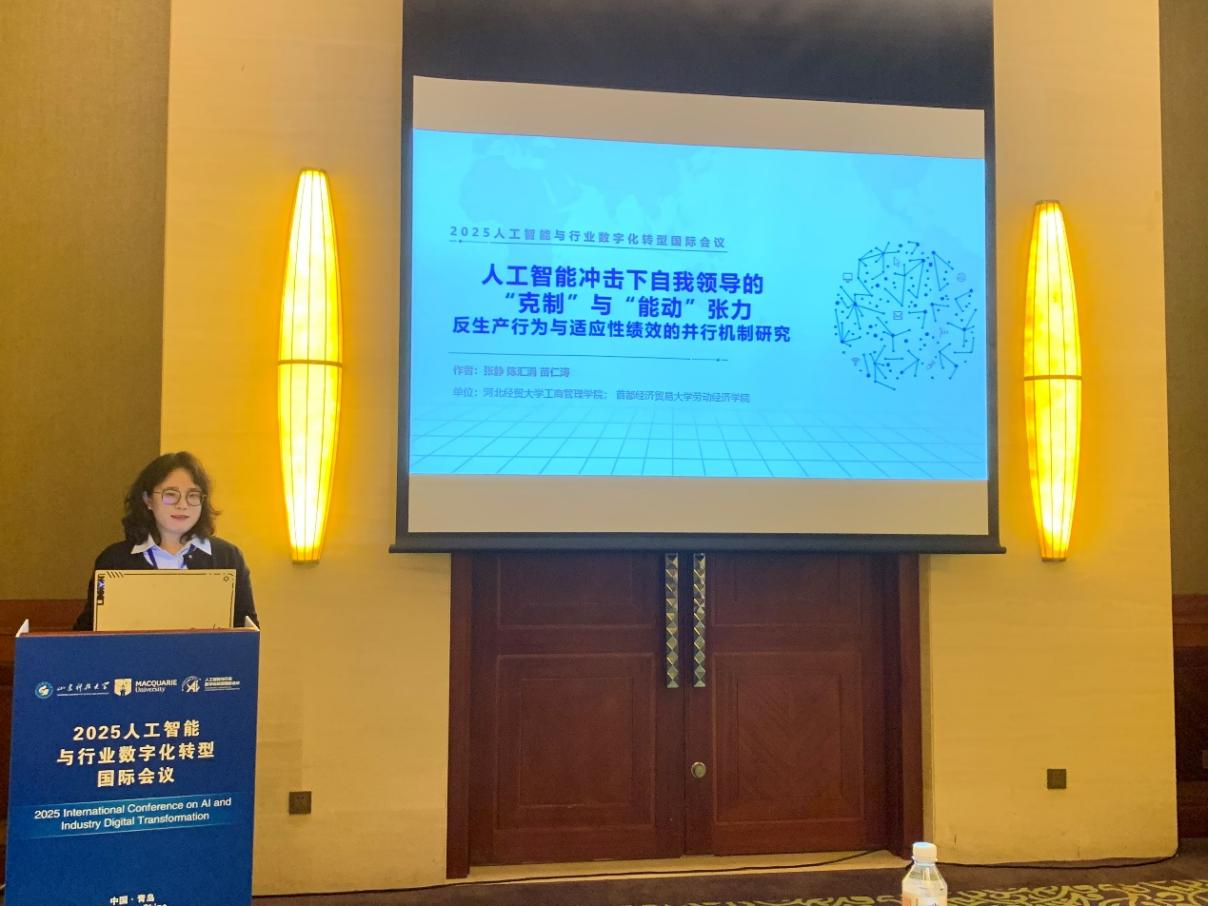 在11月1日下午的“人工智能与组织行为及人力资源管理变革”分论坛中,星空体育官网张静副教授受邀做题为“人工智能冲击下自我领导的克制与能动张力:反生产行为与适应性绩效的并行机制研究”的学术汇报。报告基于工作-要求资源模型,探讨了员工的自我领导行为通过张力对反生产行为和适应性绩效产生的差异化影响。该研究为数智时代员工如何自适应技术变革进程提供了重要理论参考和实践启示。汇报现场气氛热烈,专家与学者就研究主题及方法进行了积极讨论与评价。