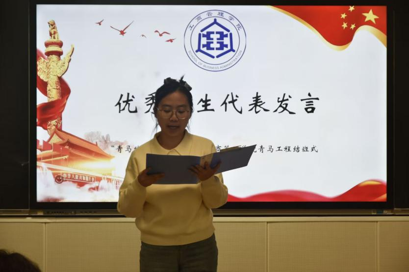 紧接着,青马优秀学员代表李雪洁分享自身领悟青年使命的成长历程,她表示,此次青马学习让她明确了前行方向,更汲取了奋进力量,未来她将带着这份收获在中国式现代化建设的生动实践中主动担当作为,始终以青年应有的朝气与豪情砥砺前行,用青春豪情为民族复兴事业添砖加瓦。