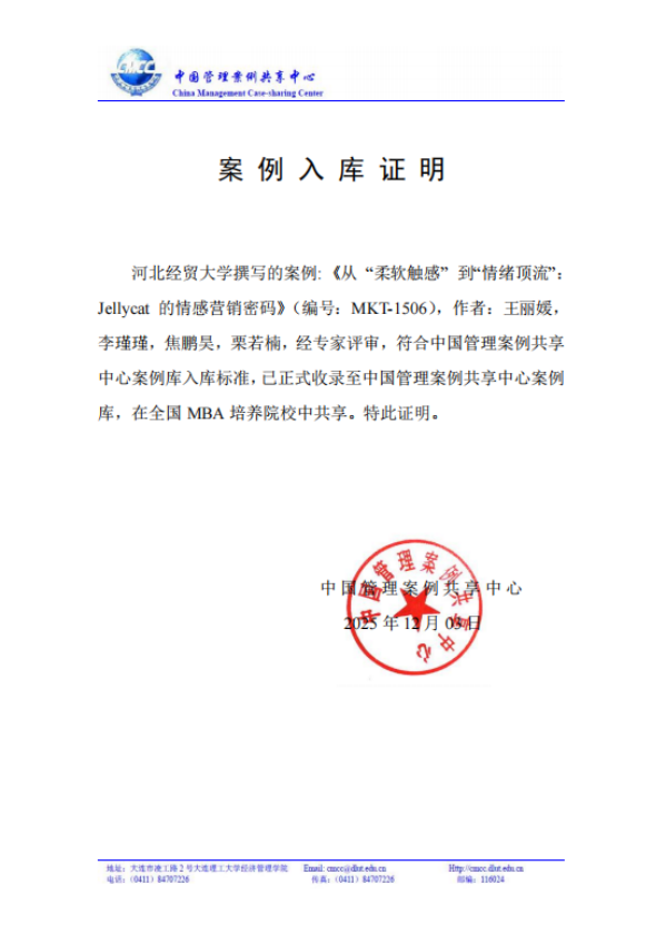 近日,星空体育官方网站王丽媛副教授、2024级星空体育官方网站研究生李瑾瑾、栗若楠和2024级人力资源管理2班焦鹏昊撰写的教学案例《从“柔软触感”到“情绪顶流”:Jellycat的情感营销密码》(编号:MKT-1506)入选中国管理案例共享中心案例库。