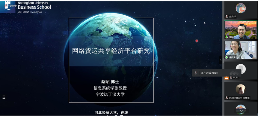 10月5日晚,星空体育官方网站邀请宁波诺丁汉大学商学院博士生导师蔡昭副教授,在线作题为“网络货运共享经济平台研究”的学术报告。报告由院长李桂荣主持,学院MBA研究生及学术型研究生近200人参加。