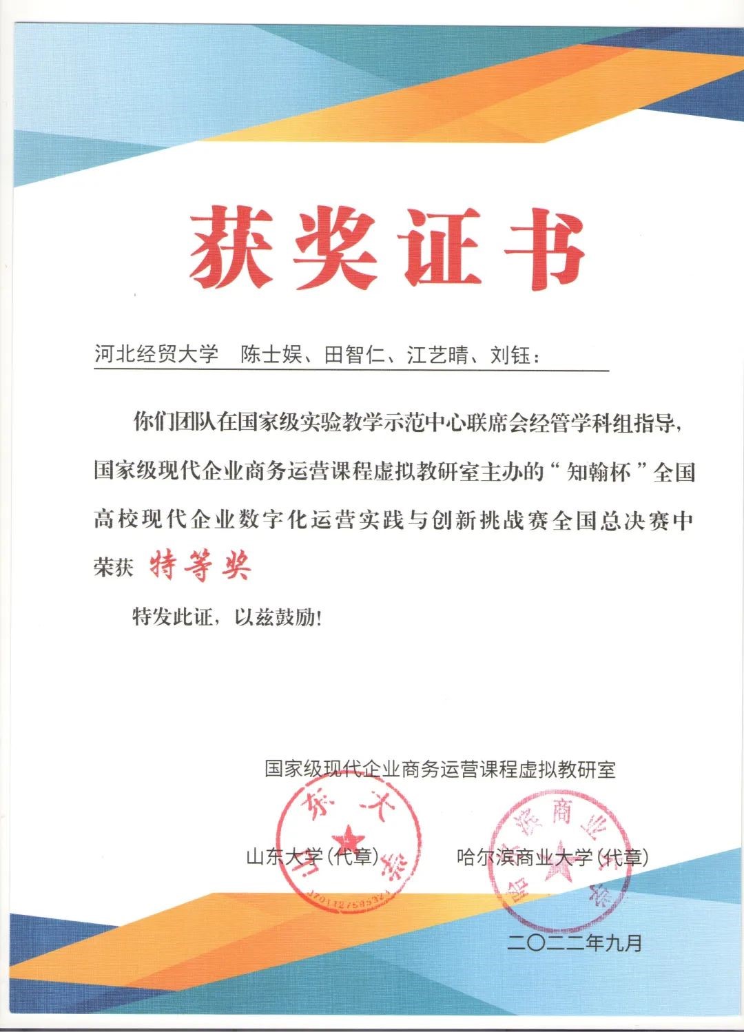 近日,“知翰杯”全国高校现代企业数字化运营实践与创新挑战赛(百团大战)落下帷幕。经过区域赛、全国总决赛的激烈角逐,由星空体育官网陈士娱、江艺晴、刘钰和金融学院田智仁四位同学组成的团队在王书玲老师的指导和带领下一路过关斩将,在全国总决赛中大放异彩,荣获特等奖。