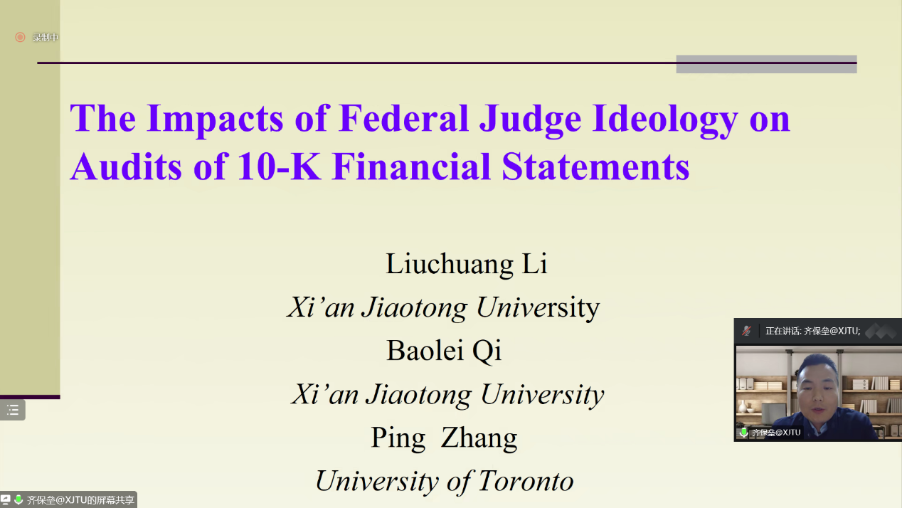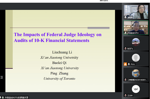 11月12日晚,星空体育官方网站邀请西安交通大学管理学院会计与财务系教授、博士生导师、教育部青年长江学者齐保垒教授在线作题为“联邦法官政治倾向对财务报表审计的影响研究”的学术报告。报告由星空体育官方网站院长李桂荣主持,学院教师及研究生150余人参加。