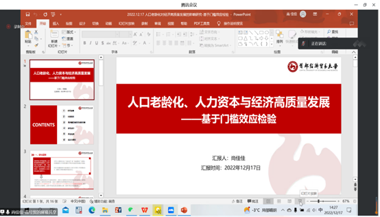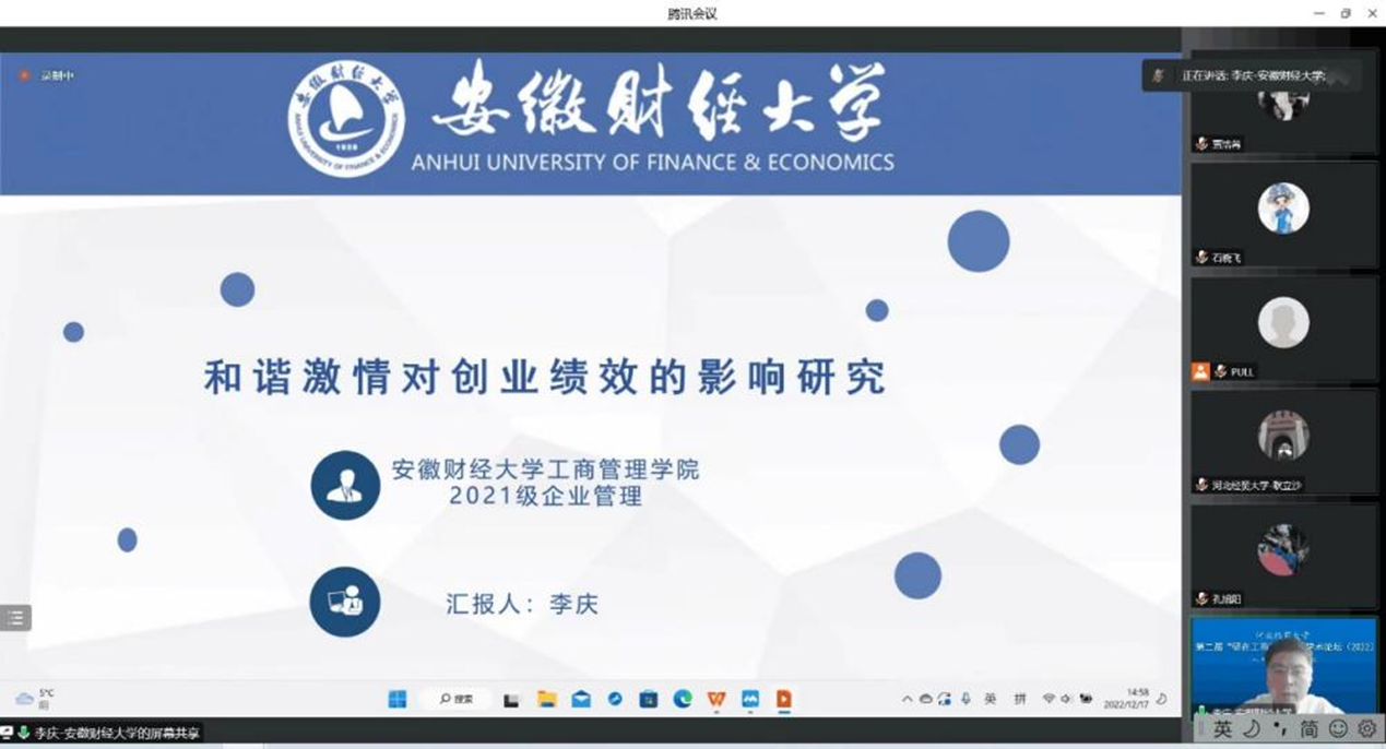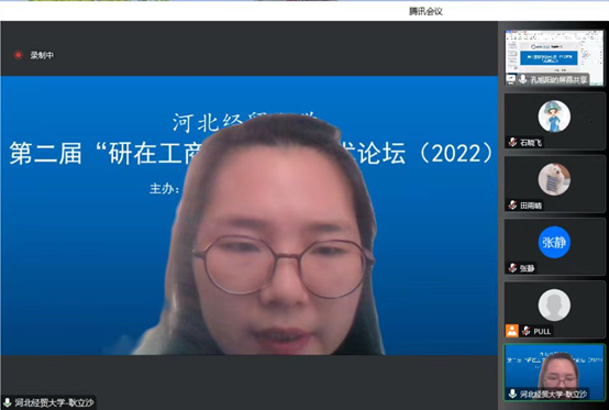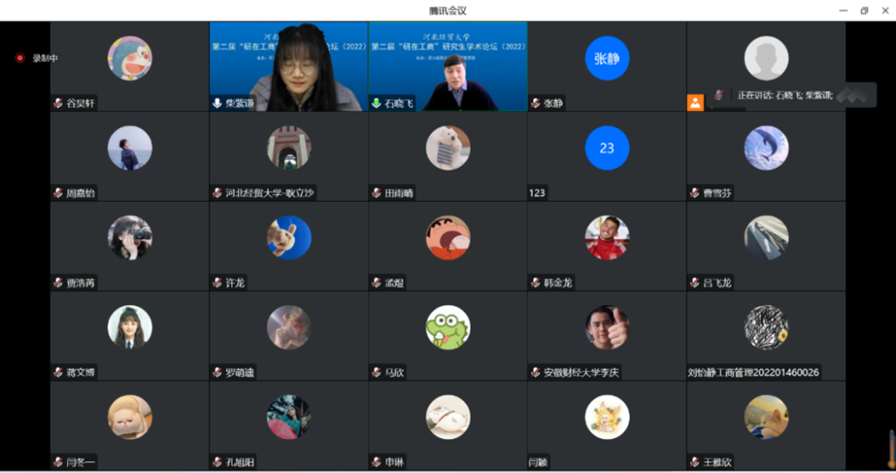 12月17日下午,由星空体育官方网站主办的第二届星空体育官方网站“研在工商”研究生学术论坛以腾讯会议形式成功举办,星空体育官方网站院长李桂荣教授出席并致辞。论坛由星空体育官方网站副院长石晓飞主持,石晓飞博士、张静博士、耿立沙博士和许龙博士出席担任评委,本次论坛包括教师及研究生共100余人参加。