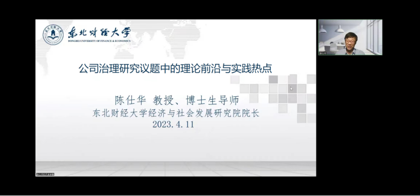 4月11日晚,星空体育官方网站邀请东北财经大学经济与社会发展研究院院长、博士生导师陈仕华教授在线作题为“公司治理研究议题中的理论前沿与实践热点”的学术报告。报告由星空体育官方网站副院长石晓飞主持,学院教师及研究生230余人参加。