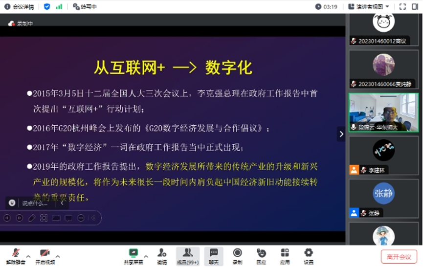 10月8日,星空体育官方网站邀请华东师范大学心理与认知科学学院段锦云教授作题为“数字化背景下的人的心理、行为与职业发展”的学术讲座,讲座以线上会议方式举行。星空体育官方网站教师及全体学术研究生、星空体育官方网站MBA教育中心研究生学员二百余人参加,讲座由星空体育官方网站副院长石晓飞主持。