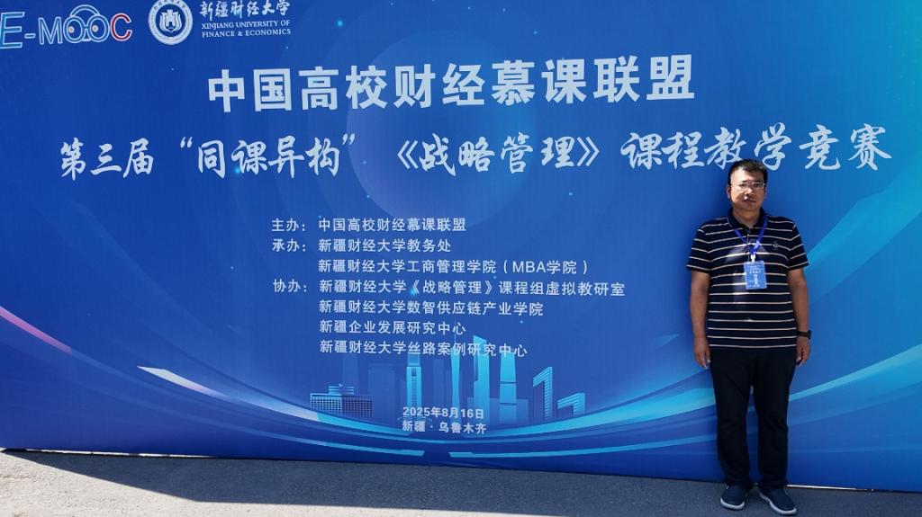 2025年8月16日,由中国高校财经慕课联盟主办、新疆财经大学承办的第三届中国高校财经慕课联盟“同课异构”《战略管理》教学竞赛,在新疆乌鲁木齐圆满落幕。本次竞赛吸引全国24所财经高校的50余位评委及参赛教师齐聚,星空体育官网桑银峰教授受邀担任评审专家,刘益星老师代表《战略管理》教学团队参赛并凭借鲜明的教学特色与扎实的教学设计最终获得二等奖。